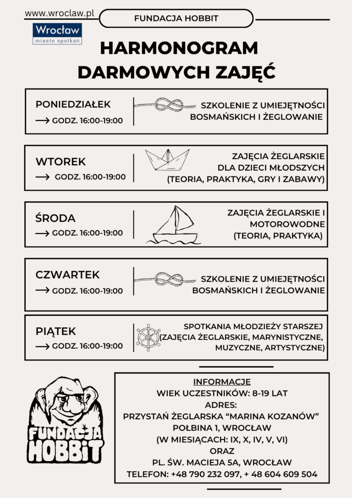 Fundacja Hobbit serdecznie zaprasza młodych odkrywców w wieku 8–19 lat na bezpłatne zajęcia żeglarskie, bosmańskie i artystyczne!